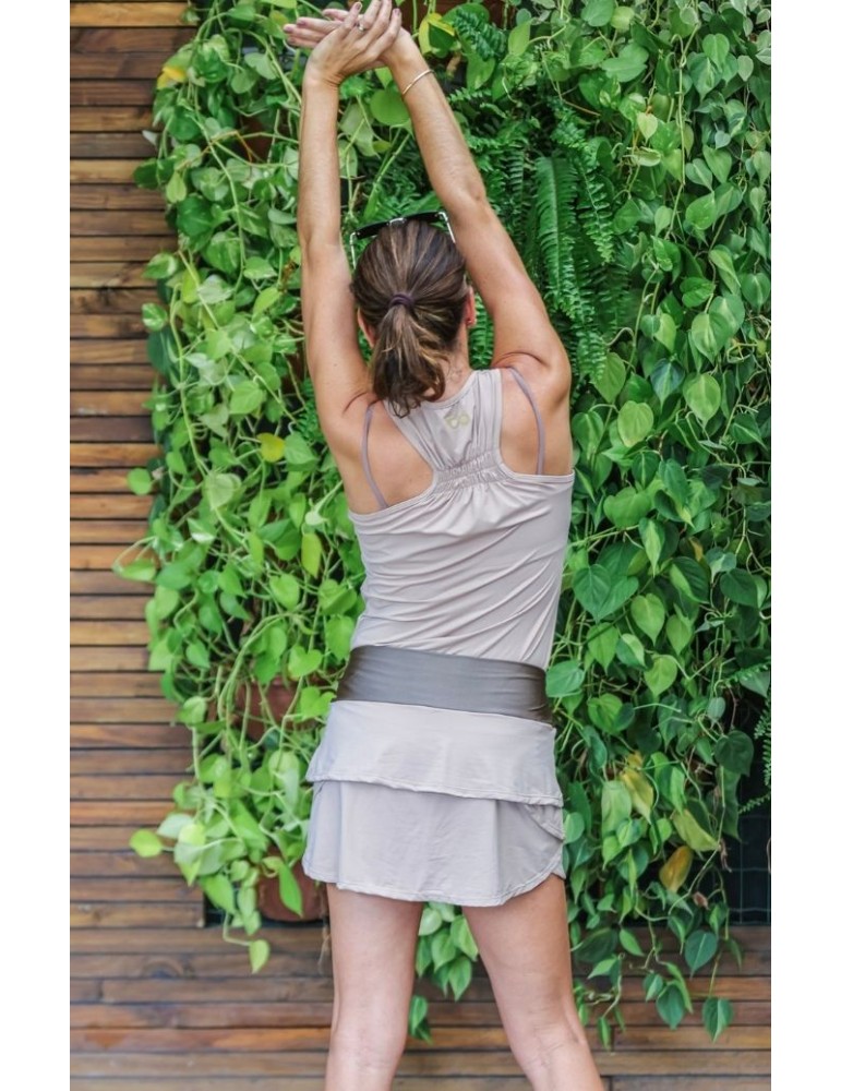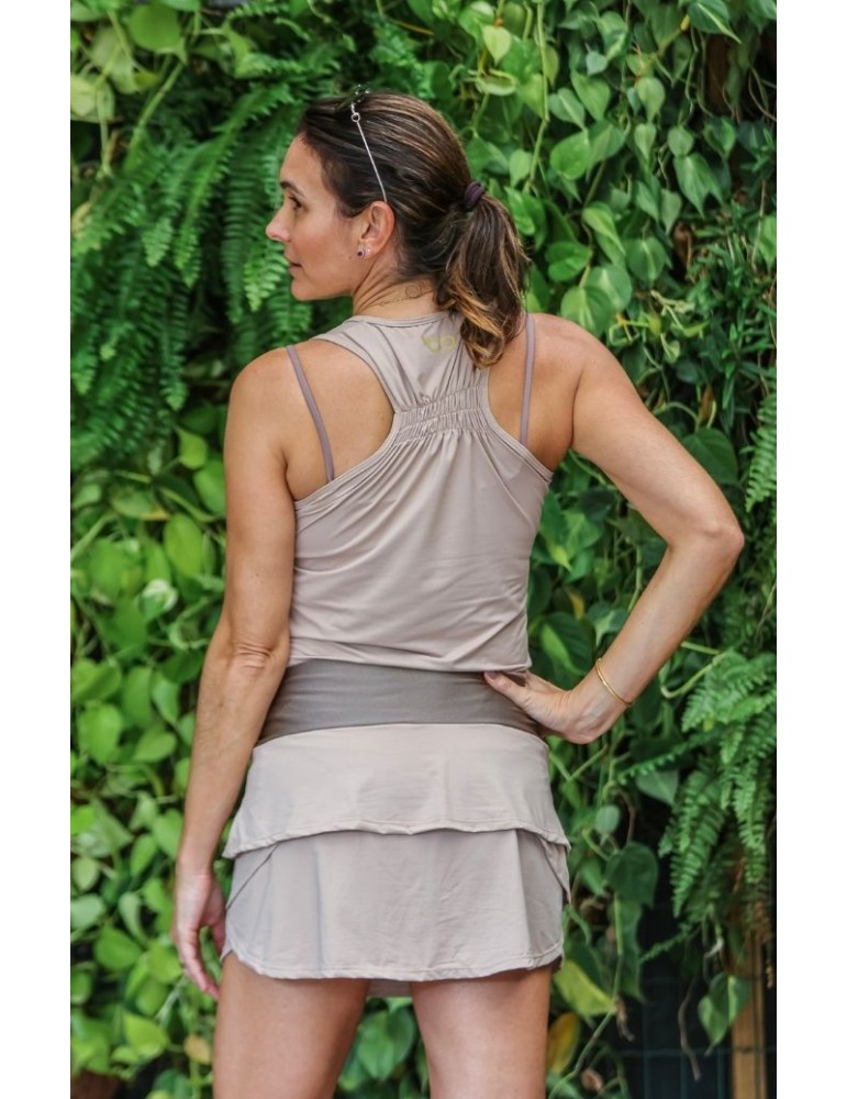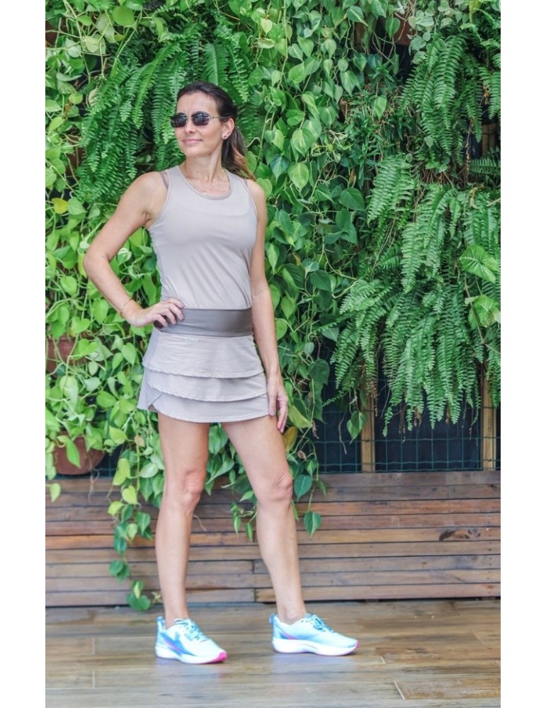 A saia ondas possui modelagem diferenciada, com camadas leves, que não aumentam o volume; cós anatômico com leve brilho, short interno de média compressão. Proporciona estilo, conforto, além da proteção UV. Ideal para prática de beach tennis, padel e training.