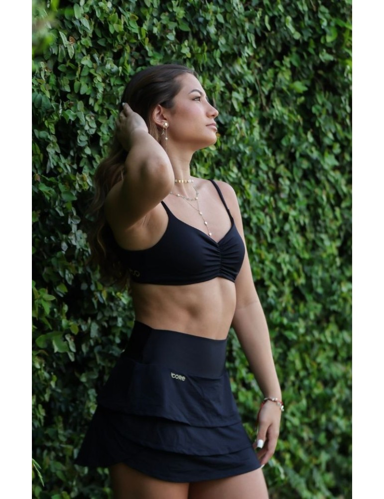 A saia ondas possui modelagem diferenciada, com camadas leves, que não aumentam o volume; cós anatômico com leve brilho, short interno de média compressão. Proporciona estilo, conforto, além da proteção UV. Ideal para prática de beach tennis, tênis, pickleball, padel e training.