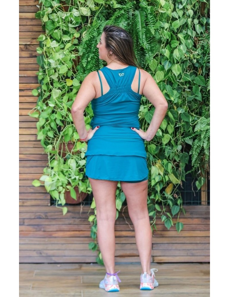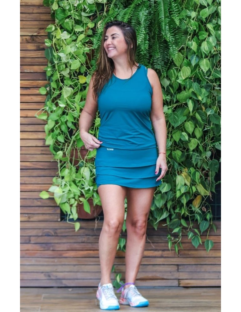 A saia ondas possui modelagem diferenciada, com camadas leves, que não aumentam o volume; cós anatômico com leve brilho, short interno de média compressão. Proporciona estilo, conforto, além da proteção UV. Ideal para prática de beach tennis, padel e training.
